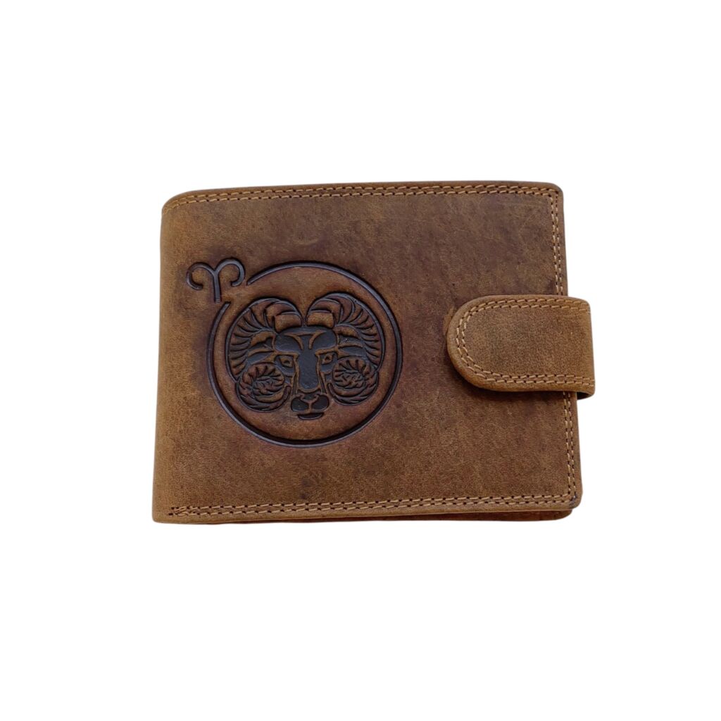 Dopřejte si dotek elegance s touto jedinečnou peněženkou z pravé kůže, která kombinuje funkčnost a osobitý design. Na přední straně peněženky se nachází detailně zpracované znamení zvěrokruhu, které z ní dělá ideální dárek nebo stylový doplněk pro každodenní použití.