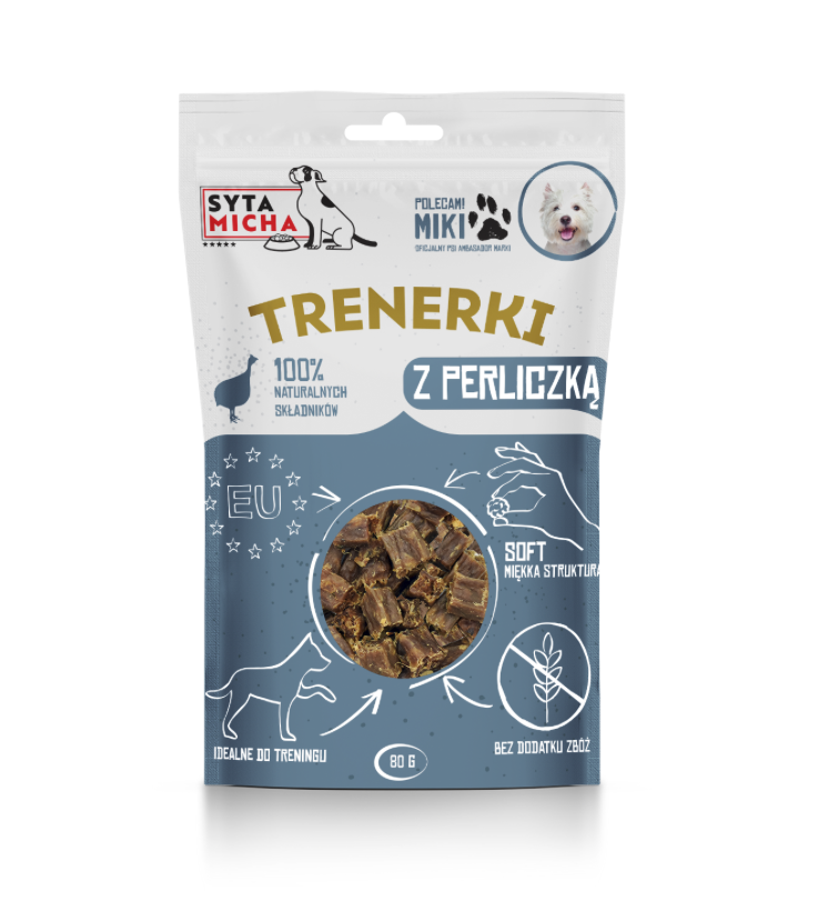 Tréninkové pamlsky z masa z perličky uspokojí tlamičky všech plemen, navíc v nich nenajdete nic než poctivé maso z perličky (a drobítek rostlinného glycerinu). V mase této zapomenuté drůbeže je vysoký obsah nenasycených mastných kyselin a pokud máte doma buřtíka, měl by vás zaujmout i mimořádné nízký obsah cholesterolu. Přibalte na cesty i cvičák tréninkové mini pamlsky!