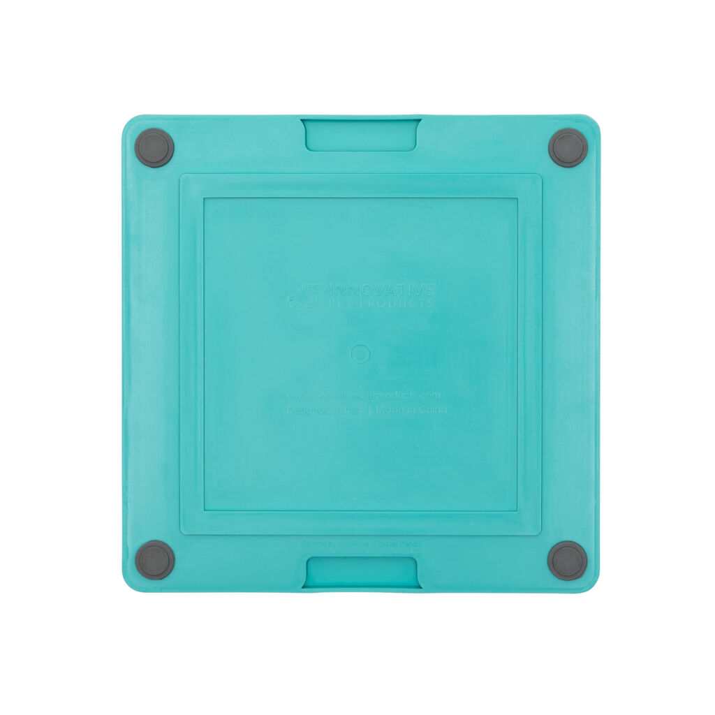 LickiMat Splash – Připevněte polypropylenovou misku s křížky pomocí přísavky na jakýkoliv hladký povrch, jako jsou třeba kachličky nebo vana. Typ Splash je ideální pro tekutější a lepivější dobroty, opět na sebe můžete navrstvit a zamrazit několik druhů pochoutek.