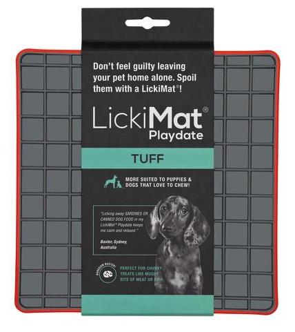 LickiMat Tuff – Pokud máte doma štěně nebo na slovo vzatého ničitele, vyberte z řady Tuff nebo Slomo. Vydrží toho opravdu hodně. Hodí se na syrové maso, tekuté dobroty, suché krmivo i nejrůznější druhy paštik a past.