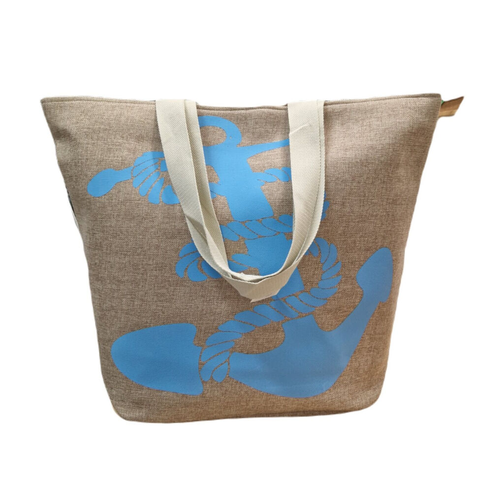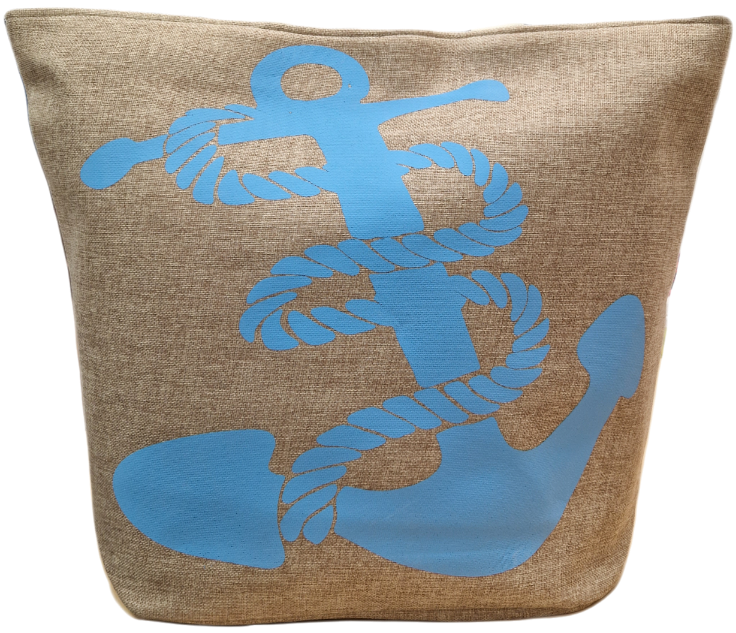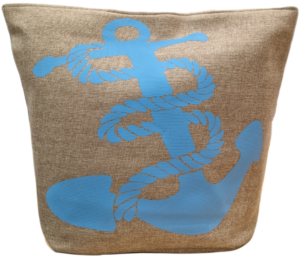 Prostorná plážová taška a modrým motivem kotvy.