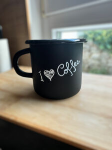 Stylový smaltovaný plecháček o objemu 0,3l pro Vaši kávu