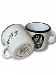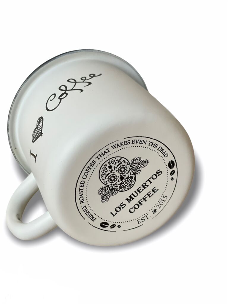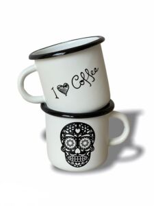 Plechový smaltovaný hrneček je skvělým doplňkem do Vaší kuchyně i na venkovní výpravy s kávou. Provedení hrnečku je bíle matné s lesklým potiskem „I love coffee“ a lebky z druhé strany.