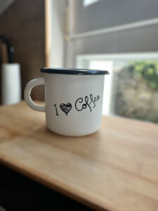 Stylový smaltovaný plecháček o objemu 0,3l pro Vaši kávu