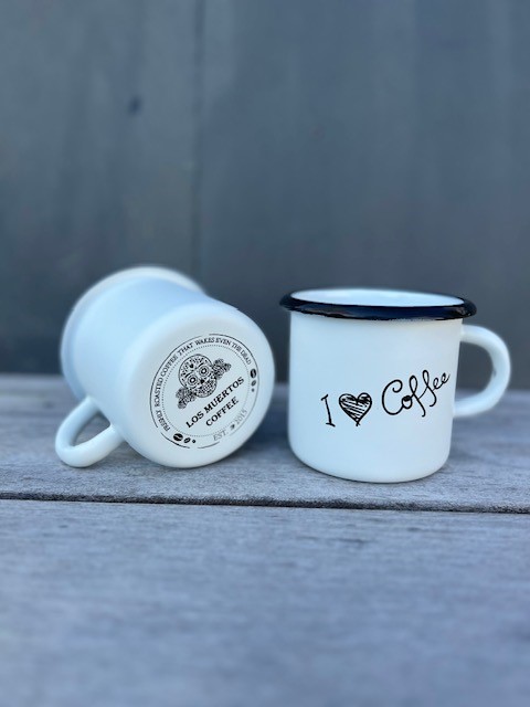 Plechový smaltovaný hrneček je skvělým doplňkem do Vaší kuchyně i na venkovní výpravy s kávou. Provedení hrnečku je bíle matné s lesklým potiskem „I love coffee“.