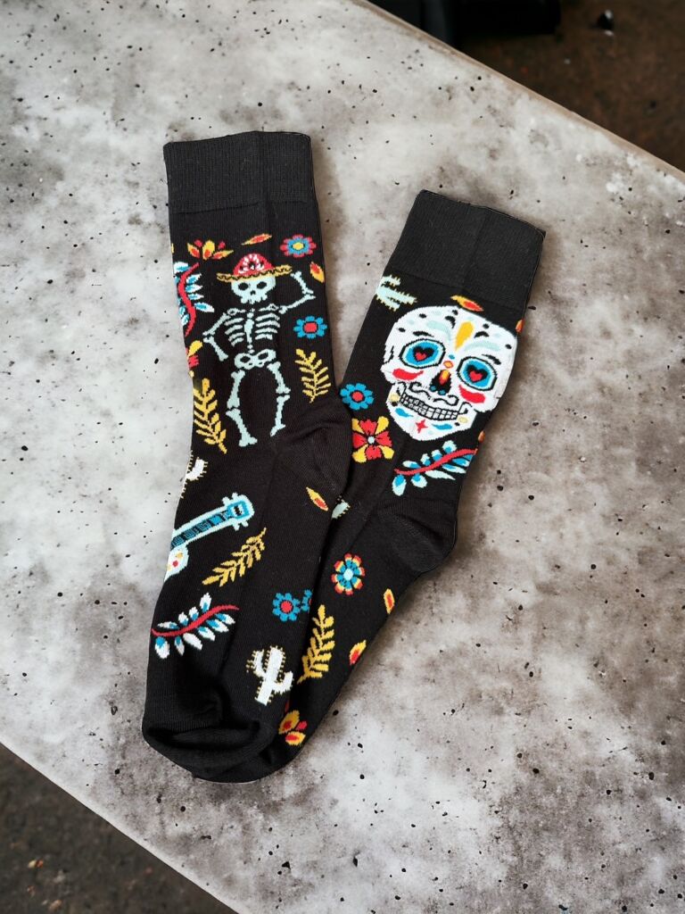 Stylové černé ponožky s motivy Dia de Los Muertos