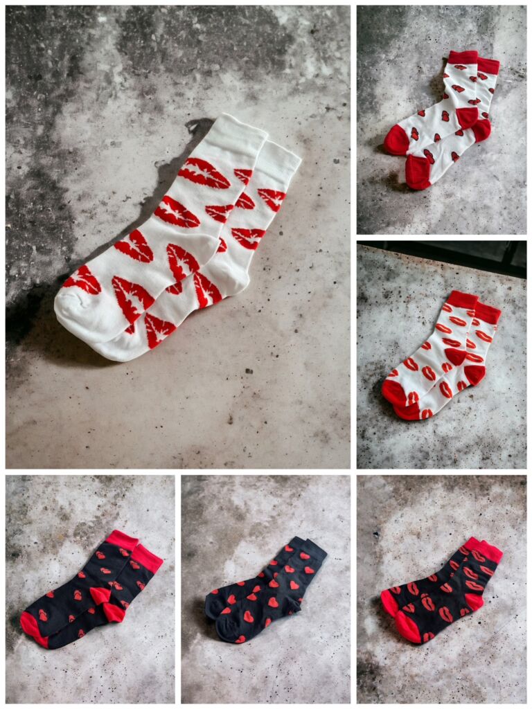 Stylové černé nebo bílé ponožky s motivy pusinek nebo srdíček. Už máte vybráno? Dokonalý doplněk k Valentýnské limitce Lovers Roast z Kolumbie