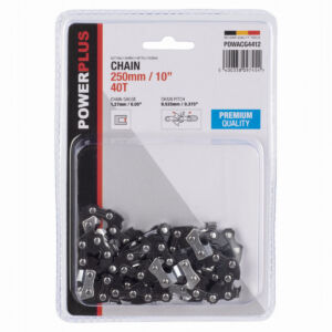 Pilový řetěz 10" (250mm) 40T - PREMIUM. Tento pilový řetěz POWACG4412 od PowerPlus prvotřídní kvality má vylepšenou geometrickou ostrost. Jeho otočné články eliminují tření a zaručují velmi čistý řez. Řetěz je kompatibilní s motorovou pilou Powerplus POWEG2005 a POWDPG75385. Tímto vysoce...