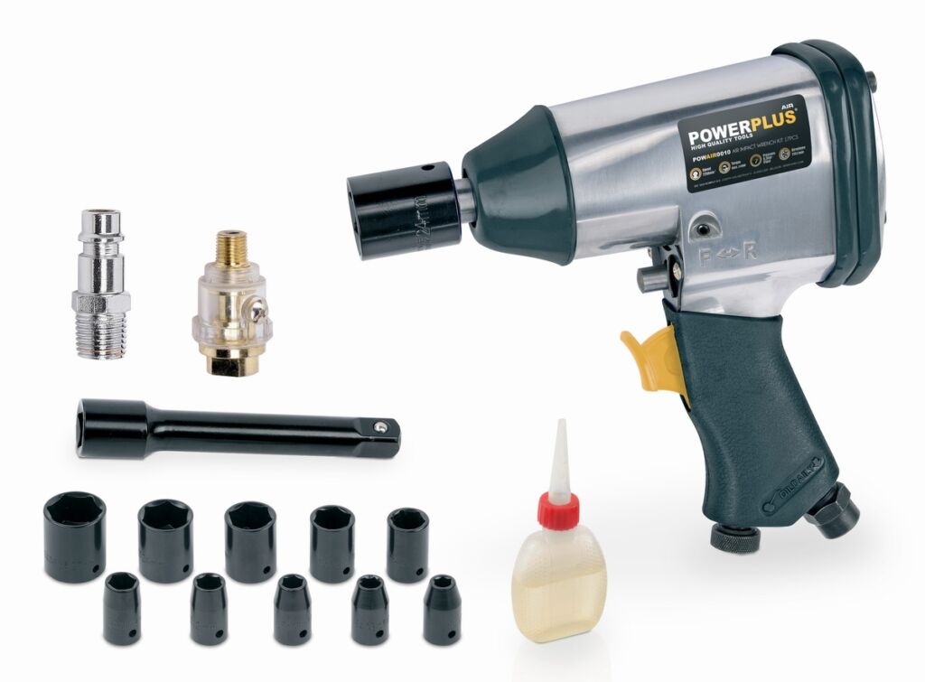 Pneumatický utahovák (sada s oříšky). , Max. utahovací moment - 310Nm, Otáčky - 7000rpm , Pracovní tlak - 6,2bar - 90psi, Průtok vzduchu - 114 l/min - 4,02CFM...