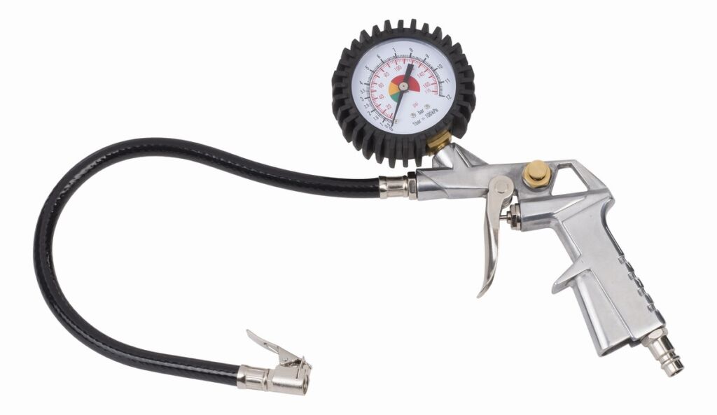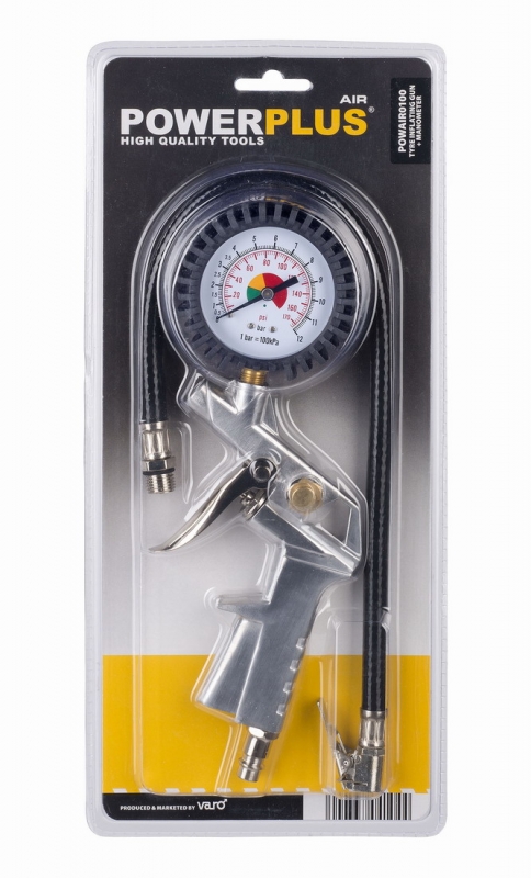Hustící pistole plus Manometr. , Pracovní tlak - 0 - 8bar, Délka hadice - 330mm, Tlakoměr - 1 - 12bar...