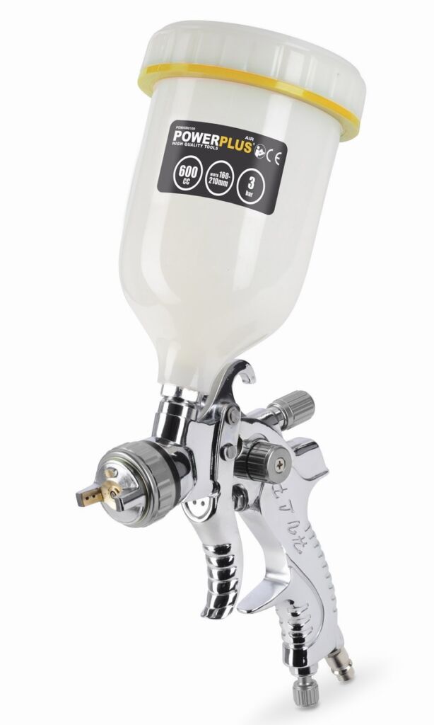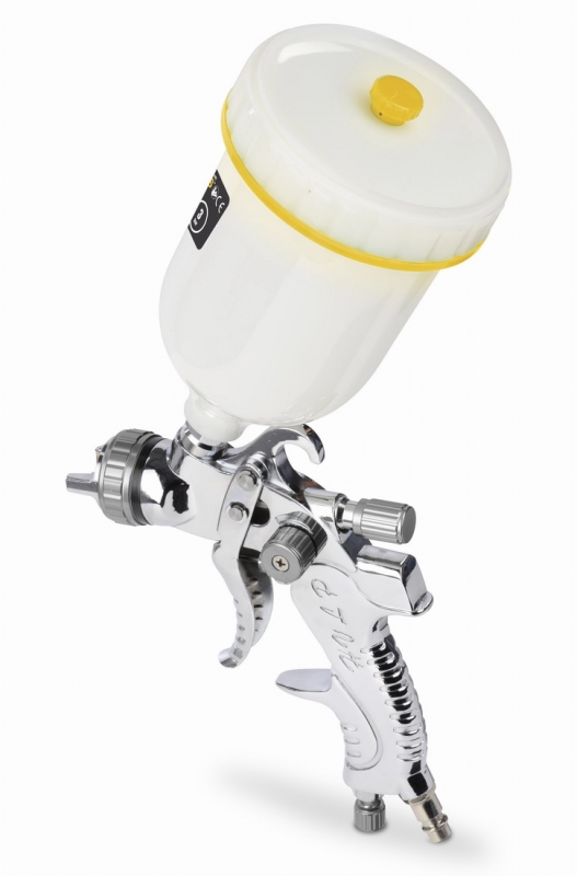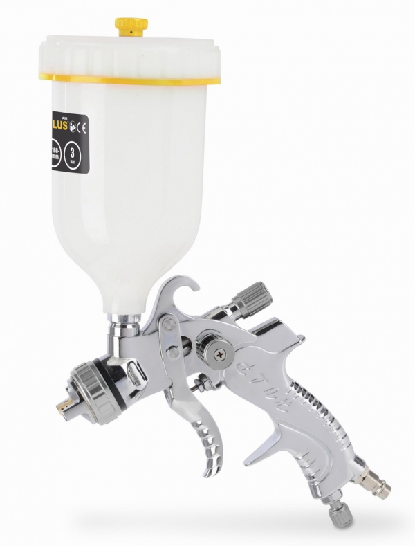 Stříkací pistole 600cc. , Maximální průtok trysky - 300 gr/min, Šířka vzoru - 160-210 mm, Standardní průměr trysky - 1,7 mm, Průměrná spotřeba vzduchu - 170-283 l/min, Objem nádoby na barvu - 600 cc, Max. tlak vzduchu - 3 bar...