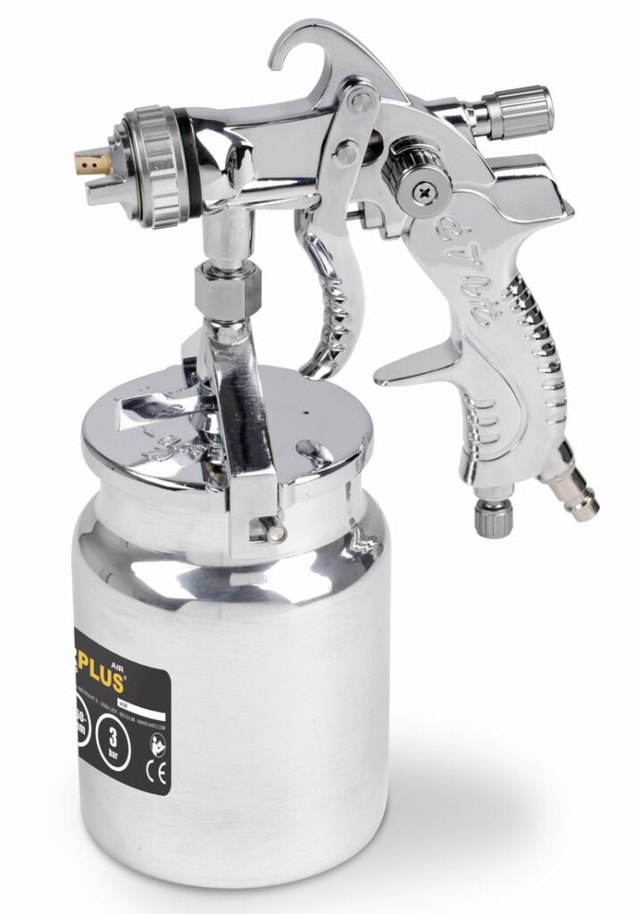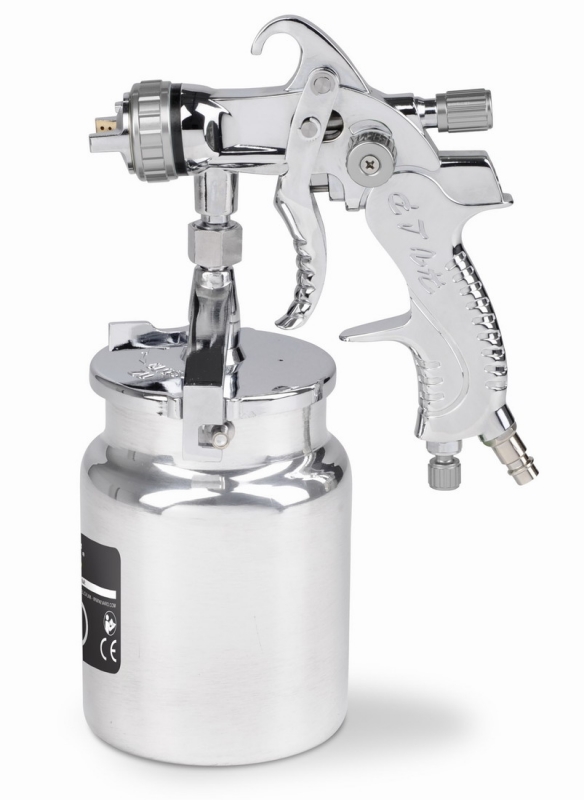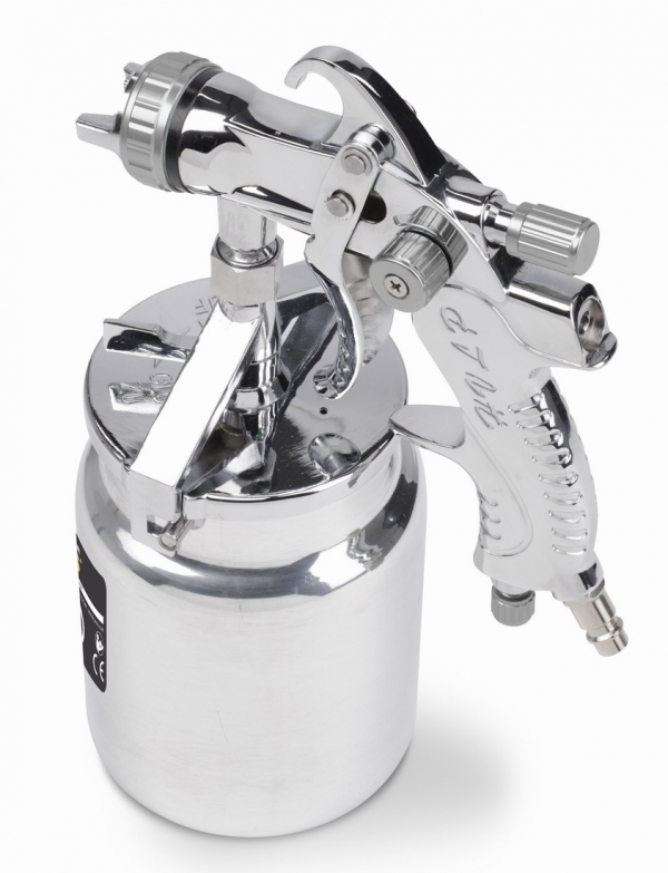 Stříkací pistole 1000cc. , Objem nádoby na barvu - 1 000 cc, Standardní průměr trysky - 1,7 mm, Průměrná spotřeba vzduchu - 170-283 l/min, Maximální průtok trysky - 200-250 gr/min, Šířka vzoru - 160-180 mm, Max. tlak vzduchu - 3 bar...