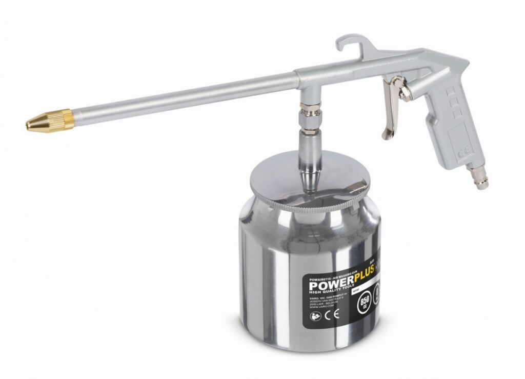 Vzduchová mycí pistole. , Průtok vzdchu - 125 l/min, Kapacita nádoby - 0.85 l, Max. tlak - 8 bar, Přívod vzduchu - 1/4 EURO, Délka trysky - 20 cm, Průměr trysky - 4.5 mm, Hmotnost - 0,5 kg...