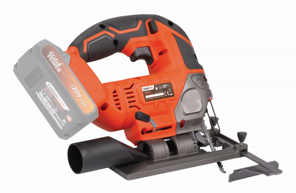 Výhodný SET POWDP25310 Aku přímočaré pily, baterie 20V 2.000mAh Li-Ion, nabíječky a to vše v praktickém kufru. Tato AKU přímočará pila POWDO25300 od společnosti POWERPLUS nabízí flexibilitu a volnost pohybu, abyste mohli úspěšně dokončit každou práci s řezáním. Pila o napětí 20V je vybavena sklopnou deskou o 45st, která umožňuje jednoduché zkosení. Manipulace s tímto strojem je snadná. S přiloženým paralelním vodítkem je možné řezání přímek stejně dobře jako řezání složitějších tvarů. Přímočará pila Dual Power má řeznou kapacitu 90 mm pro kolmé řezy a 40 mm pro 45st šikmé řezy. Díky svým 4 výkyvným polohám může pila řezat i tvrdé dřevo rychlým tempem. Díky konektoru pracovního světla a vysavače je zaručen jasný výhled na řeznou čáru a obrobek. Použít můžete baterie ze série DUAL POWER o napětí 20V a také i baterie o napětí 40V. Použití 40V baterie zajišťuje ještě delší dobu chodu stroje ve srovnání s 20V verzí.