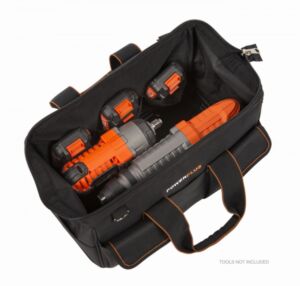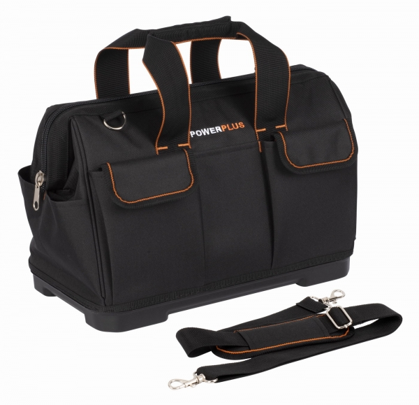 Taška na nářadí. Kvalitní taška na nářadí s pevným dnem. Taška je vybaven držadlem a popruhem přes rameno. Vnitřek a venek tašky je rozdělen do jedné velké část pro stroje a dále na menší přihrádky k uložení baterie a nabíječky nebo menších nástrojů apd... , Délka - 43 cm, Šířka - 24 cm,...