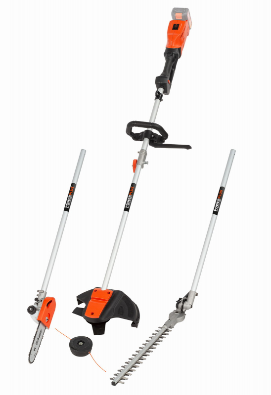 Toto AKU zahradní stroj 4 v 1 od společnosti Powerplus POWDPG7553 ze série Dual Power je ideální pro téměř každý zahradní úkol. Lze jej přeměnit na plotostřih, vyžínač trávy, křovinořez a motorovou pilu. Díky délce hřídele 1 000 mm je univerzální nástroj ideální pro stříhání vysokých živých plotů a nepřístupných keřů. Další hlavní výhodou POWDPG7553 je jeho bezuhlíkový 40V motor: výkonný a odolný motor, který produkuje méně vibrací a vyžaduje jen malou údržbu. Protože je nářadí napájeno výkonnou 40V baterií Dual Power, není problém s prodlužovacími kabely, což zaručuje úplnou volnost pohybu. Křovinořez má šířku sečení 255 mm, zatímco vyžínač trávy nabízí 320 mm. Vyžínač trávy využívá 5 m dlouhou strunovou strunu se systémem Tap a Go. Jednoduše poklepejte hlavou na zem a uvolní se nová délka struny. Multifunkční zahradní nářadí lze také přeměnit na plotostřih o záběru 410 mm. Tento zastřihovač je vybaven laserem řezanou čepelí s protiběžným pohybem, který umožňuje velmi přesné zastřihování až 22mm silných větví. Řetězová pila má délku lišty 200 mm a funguje velmi hladce dílky řetězu a liště OREGON s automatickým mazáním. S tímto multifunkčním strojem Dual Power je zaručena bezpečná práce: rychlé zastavení zastaví nože ihned po použití. Ochranné kryty zajišťují bezpečné použití a bezpečné skladování. Nosný pás umožňuje ergonomickou práci. Použití pouze se 40V bateriemi ze série DualPower.