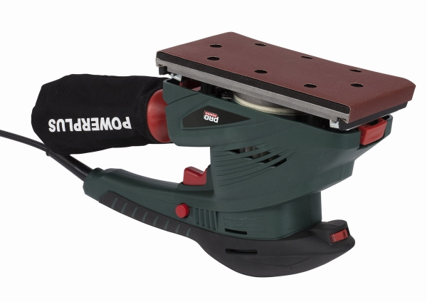ŘADA PRO POWER JE NAVRŽENA TAK, ABY SPLNILA NÁROČNÉ POŽADAVKY PROFESIONÁLŮ. VYSOCE KVALITNÍ STROJE POSKYTUJÍ VYSOKÝ VÝKON A ZVLÁDNOU I TY NEJNÁROČNĚJŠÍ ÚKOLY. S PRO POWER SI MŮŽETE BÝT JISTI KVALITOU A SPOLEHLIVOSTÍ. Tato vibrační bruska má systém suchého zipu pro uchycení brusného papíru. To umožnuje použití všech druhů brusných papírů. Má silnou hliníkovou základnu a ergonomickou měkčenou rukojeť pro pohodlné používání. Aretační tlačítko pro stálý chod umožní nepřetržitou práci a zvyšuje komfort obsluhy. Prachový sáček shromažďuje veškerý prach během broušení a zajišťuje lepší viditelnost povrchu broušení a čistší pracovní prostředí.