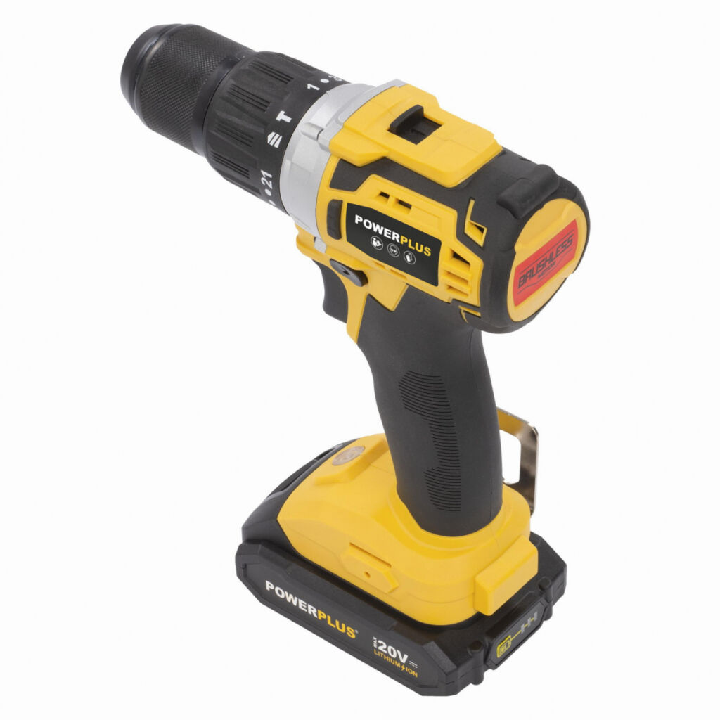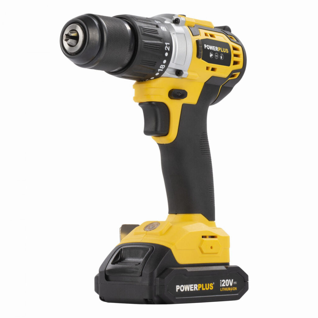 Tato 20V akumulátorová bezuhlíková příklepová vrtačka POWX00850 od Powerplus je všestranný pomocník pro většinu šroubovacích a vrtacích prací v domě a kolem něj. Směr otáčení lze změnit stisknutím tlačítka. Vrtačka/šroubovák má dva převody s maximální rychlostí otáčení 600 až 2.000 otáček za minutu což umožňuje stroji dosáhnout maximální kapacity vrtání prům.38 mm do dřeva a prům.13 mm do oceli. Rychloupínací kovové sklíčidlo 13 mm zajišťuje nezbytnou jednoduchost použití. Motor poskytuje maximální utahovací moment 60 Nm. Díky 23 nastavením krouticího momentu lze stroj snadno přizpůsobit jakémukoli šroubování a vrtání. Pracovní světlo poskytuje dostatek světla pro dobrou práci i na špatně osvětlených místech. Vrtačka/šroubovák se dodává v praktickém úložném kufříku s celkem 78ks příslušenství. Součástí stroje jsou 2 baterie a rychlonabíječka. Každá baterie má kapacitu 2.000 mAh. Součástí je také rozsáhlá sada šroubovacích bitů a vrtáků, praktické ruční nástroje, jako je nůž a metr.
