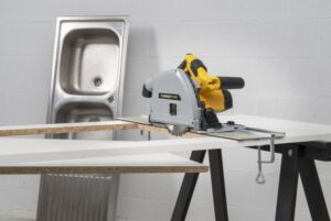 Ponorná pila 1 200W - SET. , Napětí - 230 - 240V / 50Hz, Příkon - 1.200 W, Otáčky naprázdno - 5.200 min-1, Rozměr kotouče - 165x20x2,6mm - 24T, Úhel nastavení - 0 - 45st, Max. prořez při 90st s lištou - 50 mm, Max. prořez při 45st s lištou - 36 mm, Max. prořez při 90st bez lišty - 56 mm, Max....