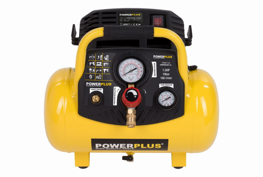 Kompresor 1100W 12L 10bar bezolejový. , Napětí - 230V / 50Hz, Příkon - 1 100 (S3:25procent) W / 1,5 HP, Otáčky - 3 400 min-1, Jmenovitý tlak - 10 bar / 145 PSI, Průtok vzduchu (kapacita) - 180 l/min, Objem vzdušníku - 12 L, Hladina hluku - 97 dB(A), Hmotnost - 13 kg...
