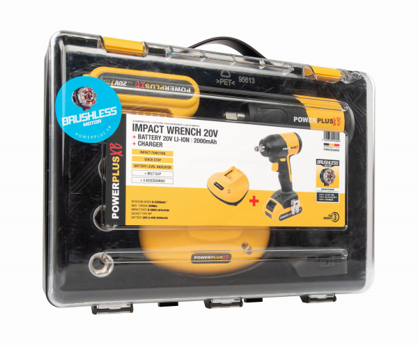 Tento akumulátorový rázový utahovák POWXB30050 z řady Powerplus XB má max. kroutící moment 220 Nm. Kompaktní 20V elektrické nářadí je vybaveno výkonným a extra odolným bezuhlíkovým motorem. Díky svému kompaktnímu designu a nízké hmotnosti je manipulace s ním výjimečně snadná. Akumulátorový rázový utahovák lze nasadit kdekoli i v malých prostorech a úzkých rozích. Měkká rukojeť vám pohodlně padne do ruky. Tento stroj se dodává v praktickém úložném kufříku, včetně nabíječky, baterie 2,0 Ah, 3ks nástrčných klíčů a spony na opasek.