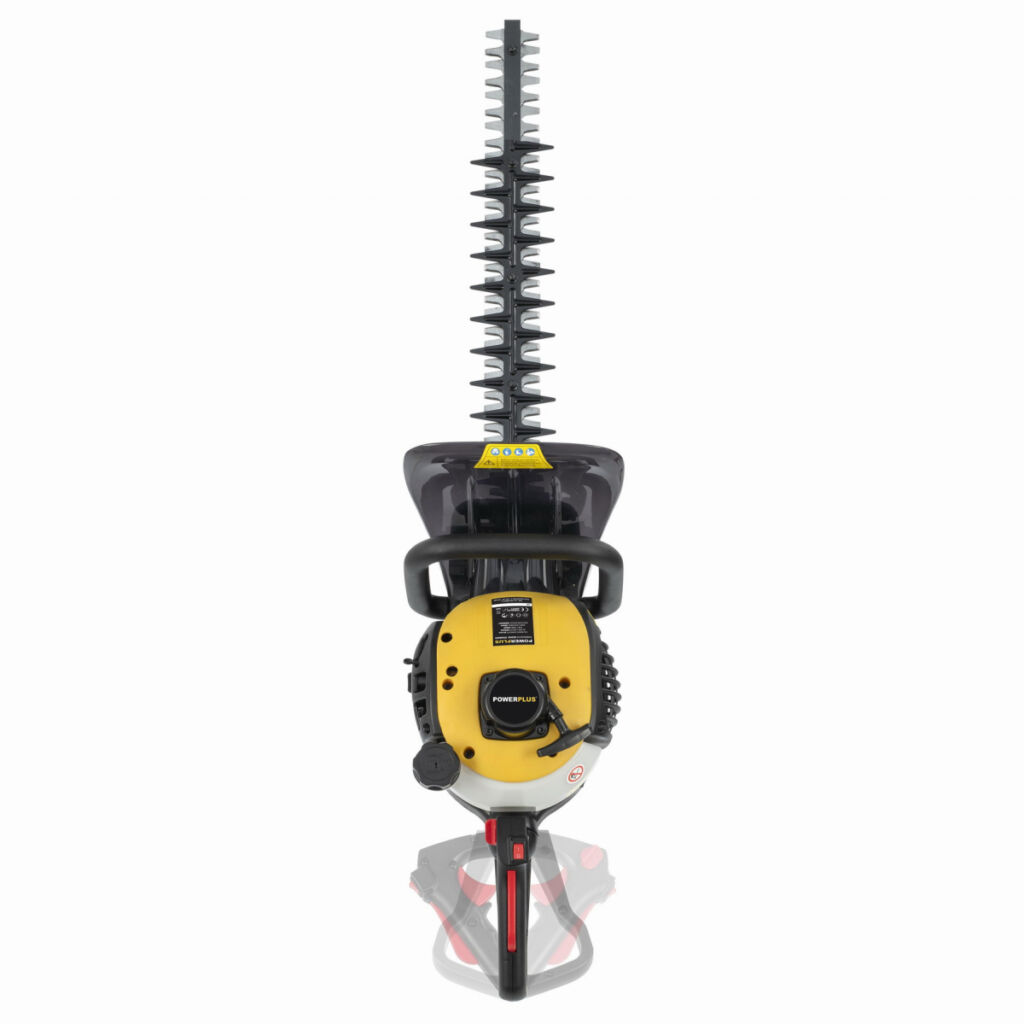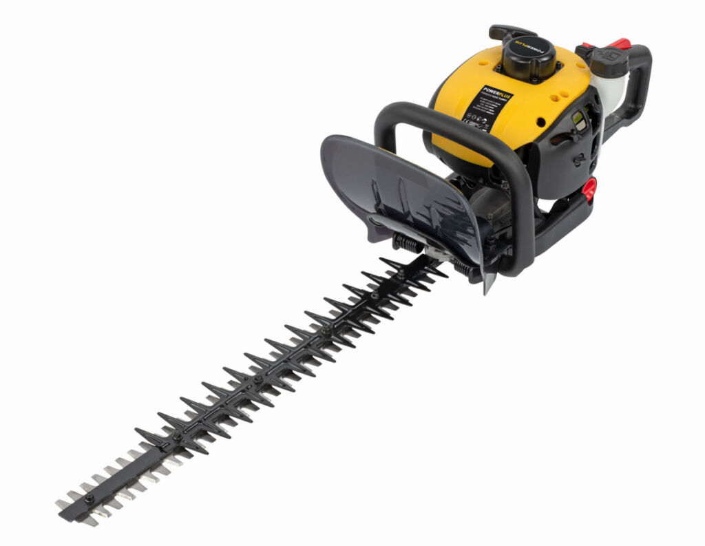 Tyto nůžky na živý plot POWXG2018 od PowerPlus jsou vybaveny motorem o objemu 25,4 cm3. Takže máte dostatek síly pro rychlé stříhání živých plotů a keřů s atraktivním výsledkem. S velikostí čepele 600 mm a laserem řezanými dvojčinnými čepelemi si snadno poradíte i s větvemi o průměru až 28 mm. Nastavitelný úhel zastřihování (otočná rukojeť) umožňuje sledovat tvar keře nebo živého plotu, aniž byste se museli natahovat a ohýbat v nevhodných polohách. Motor s nádrží o objemu 0,53 l poskytuje naprostou volnost pohybu. Ochranný štít a systém redukce vibrací zaručují vaši bezpečnost a snadný start motoru vám umožní rychle se pustit do práce. Rychlé zastavení je také velmi užitečným bezpečnostním prvkem, který po vaší činnosti okamžitě zastaví nože.
