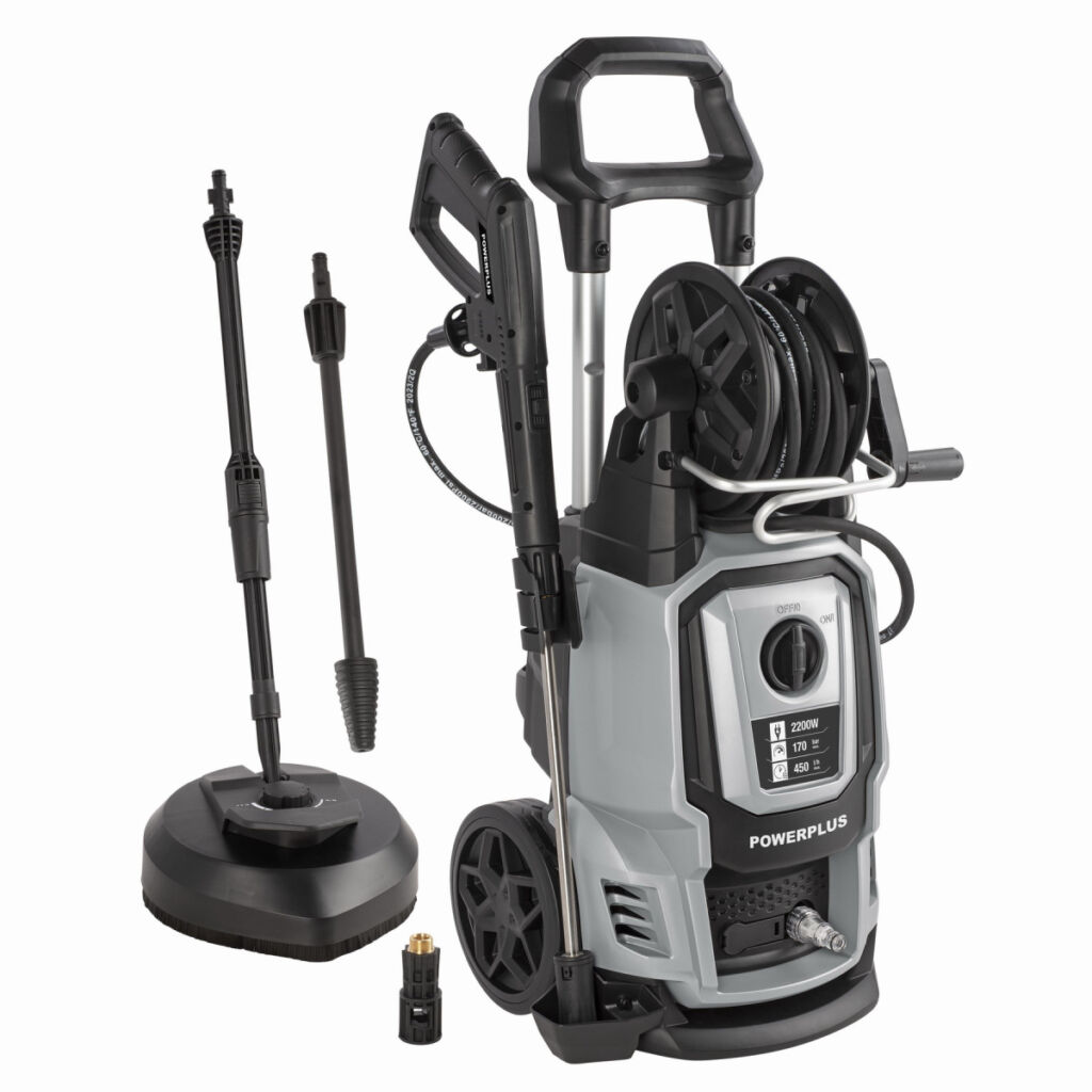 Proti této vysokotlaké myčce, vybavené výkonným 2200W motorem, nemá šanci ani ta nejodolnější špína. Tento vysokotlaký čistič POWXG90421 od Powerplus je skutečným všestranným pomocníkem s vestavěnou nádrží na čisticí prostředek o objemu 1,1 l. Při maximálním tlaku vody 170 bar je tato tlaková myčka ideální pro nejnáročnější čisticí práce, např. velkých ploch nebo odstraňování extrémně odolných nečistot. Tlaková myčka má maximální průtok 450 l/hod.. Tento vysokotlaký čistič je vybaven systémem start/stop, což znamená, že se nespustí, pokud není zapnutý a nestisknete spoušť. Čistič se zastaví, jakmile pustíte spoušť. Systém, který šetří vodu a elektřinu. Vysokotlaký čistič má vestavěný hadicový naviják pro snadné navíjení vysokotlaké hadice, která má délku 8m. To udržuje hadici bez zauzlování a umožňuje kompaktní skladování. Hadice navíc zůstává připojena k tlakové myčce. V kombinaci s vedením hadice to zjednodušuje navíjení a odvíjení navijáku hadice. Robustní kola unesou velkou část hmotnosti tlakové myčky. Zabraňuje namáhání vašich zad, umožňuje snadný pohyb a nezažijete mnoho nepříjemností ani po delší dobu.