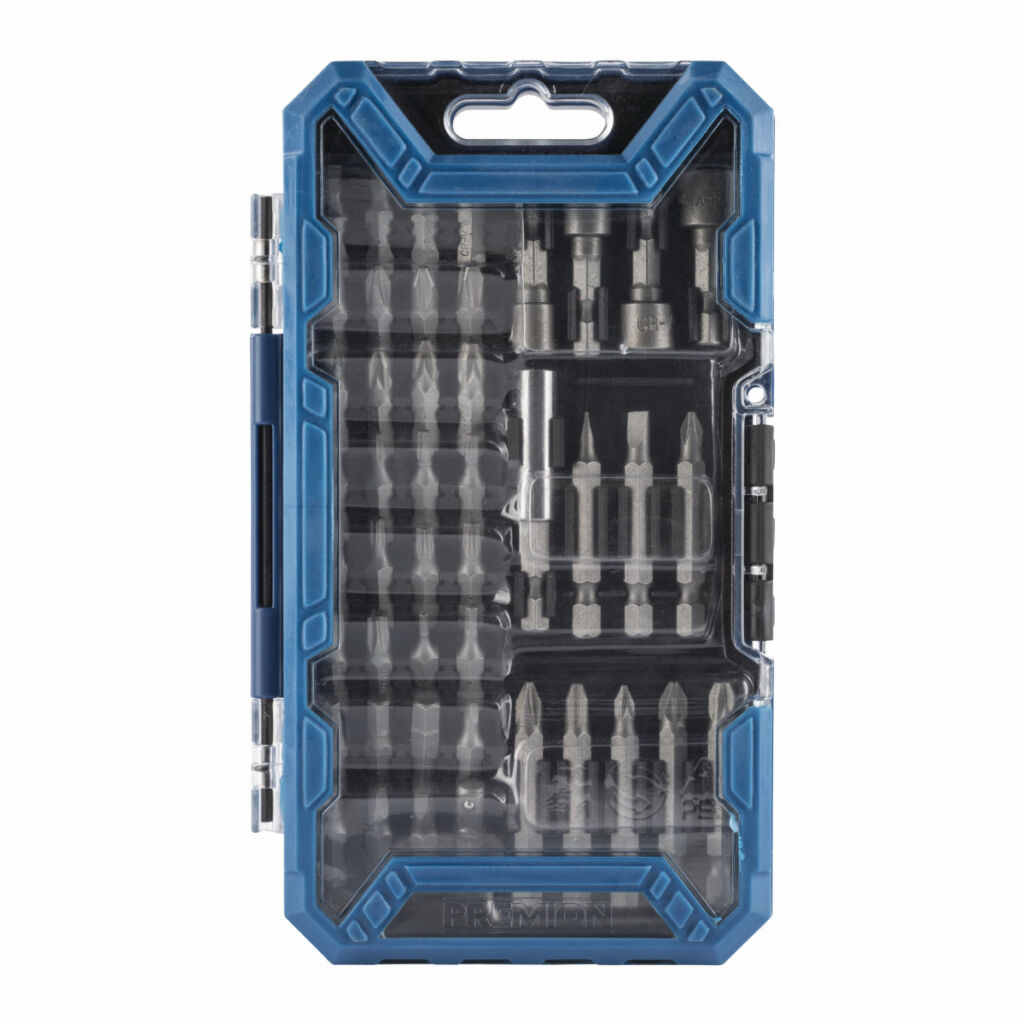 Tato praktická sada PRER00028 od Premion se skládá z nejméně 45 různých CR-V šroubovacích bitů a nástrčných klíčů. Praktické pouzdro tedy kromě různých nástrčných klíčů obsahuje také Ploché, Philips, Pozidriv a šestihranné bity.