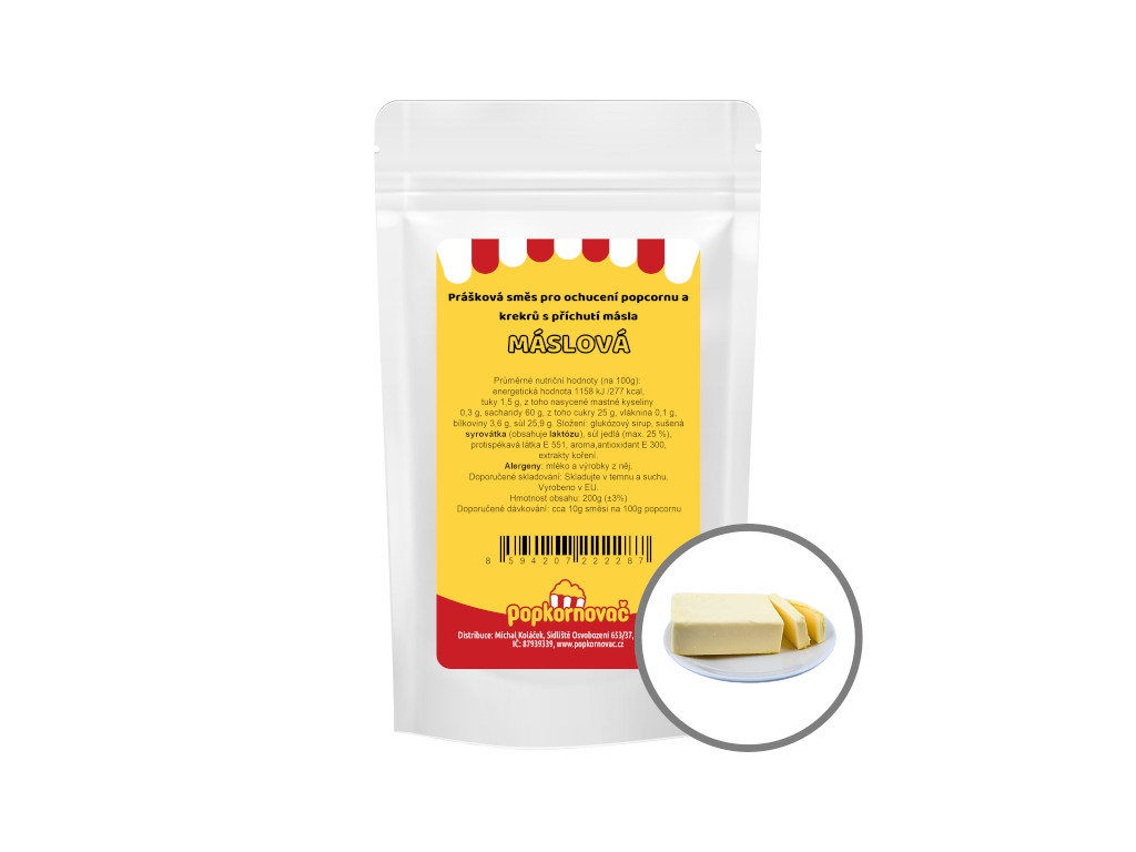 Prášková směs pro ochucení popcornu a krekrů s máslovou příchutí, balení 200g