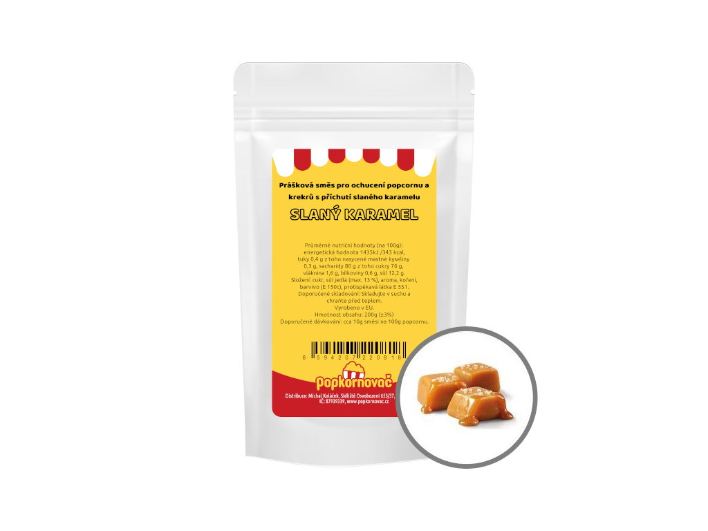 Prášková směs pro ochucení popcornu a krekrů s příchutí slaného karamelu, balení 200g