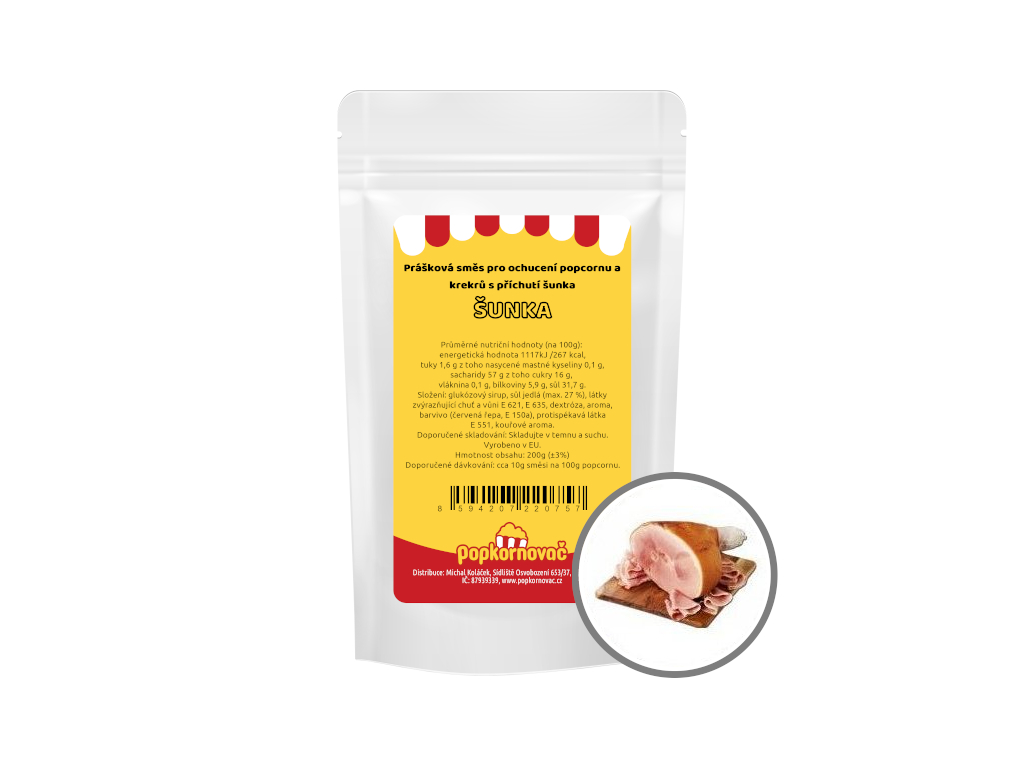 Prášková směs pro ochucení popcornu a krekrů s příchutí šunka, balení 200g