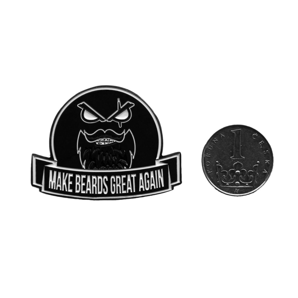 Máte strach, že jste zabloudili na sexshop a jde o nějakou zvrácenost? Kdeže, jde o železný připínák pro true vousáče. Tady asi není o čem, jde o připínák, kterej můžete hrdě nosit třeba i na hrudi. Zezadu jsou dva bodce s pojistkami. Testovali jsme je a drží, ale když se za pin silou zatáhne, tak se vyrvou, takže umístěte raději někam, kde bude v klidu. PS. Koruna je opět pouze pro ilustraci velikosti, fakt nemůžeme postrádat ani jednu.