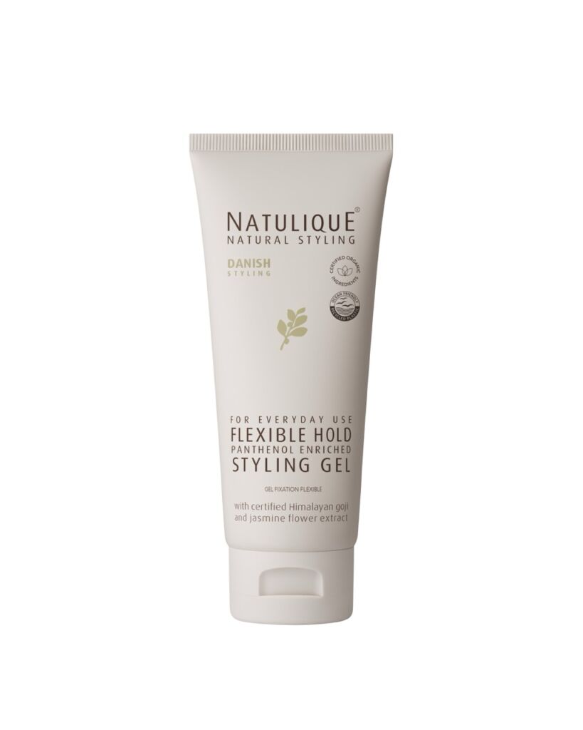 Přírodní gel na vlasy NATULIQUE Flexible Hold Styling Gel dodává účesu středně silnou, a přesto pružnou fixaci, lesk a moderní mokrý efekt. Díky výtažkům z kustovnice čínské a jasmínu gel vlasy nezatěžuje, naopak je vyživuje a zanechává je pružné, jemné, bez pocitu slepení a zářící zdravím. Zároveň vlasům poskytuje ochranu před teplem a dalšími škodlivými vnějšími vlivy.