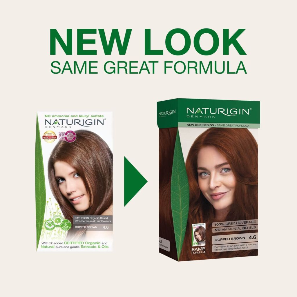 Permanentní přírodní barva na vlasy pro domácí barvení vlasů NATURIGIN Copper Brown dodá vlasům středně hnědý odstín s měděnými, teplými, červenými odlesky. Tato barva na vlasy, která 100% kryje šediny, je vhodná i pro vlasy bez šedin. 12 přírodních ingrediencí zanechává jemnou vůni a vlasy během barvení chrání a dodává jim výživu a jedinečný lesk. Barvy NATURIGIN v sobě spojují přírodní péči a dokonalé krytí šedin a odrostů.