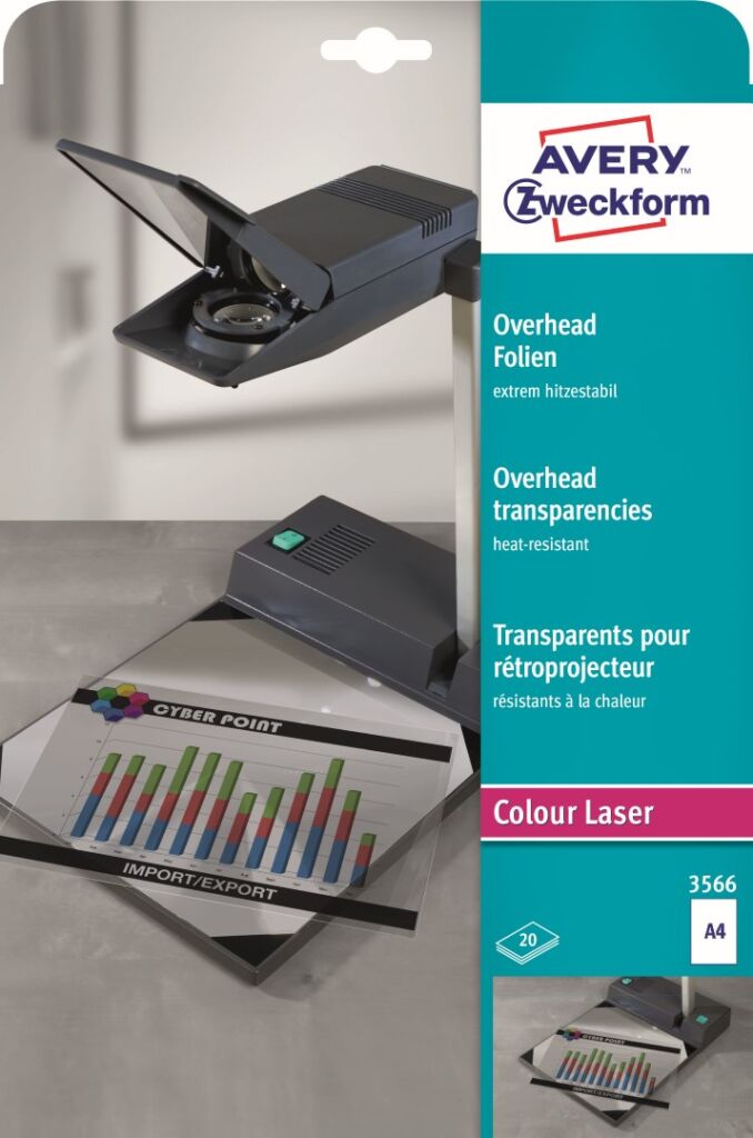 Projektorová fólie Avery Zweckform 3566 je ideální na jednoduchou a rychlou přípravu barevné prezentace, školení nebo přednášky pomocí zpětného projektoru. Mimořádně tepelně stabilní polyesterová fólie do projektorů (tloušťka 0,13 mm) má speciální oboustrannou antistatickou povrchovou úpravu pro pro vynikající reprodukci a sytost barev, ostré kontury tisku a vynikající přilnavost toneru, zabraňující rozmazávání. Fólie stačí jednoduše vložit do zásobníku na papír a bez problémů můžete potisknout i větší počet fólií najednou. Fólie pro zpětné projektory Avery 3566 jsou vhodné pro všechny běžné barevné laserové tiskárny.
