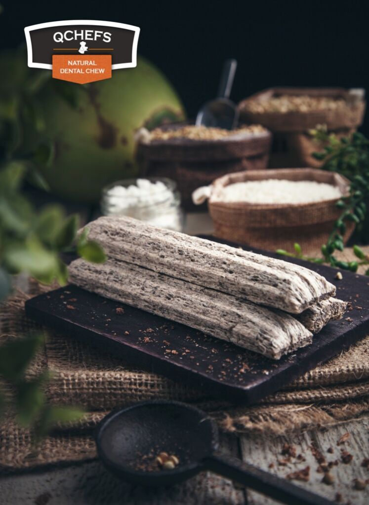 Čištění psích zubů nemůže být snazší než s QCHEFS! Pamlsky mají přirozeně antibakteriální účinek. Díky tomu účinně redukují bakterie způsobující zubní plak. Rozkládají se v psí tlamičce tak, aby se postaraly o odstranění zubního kamene i nepříjemného zápachu.