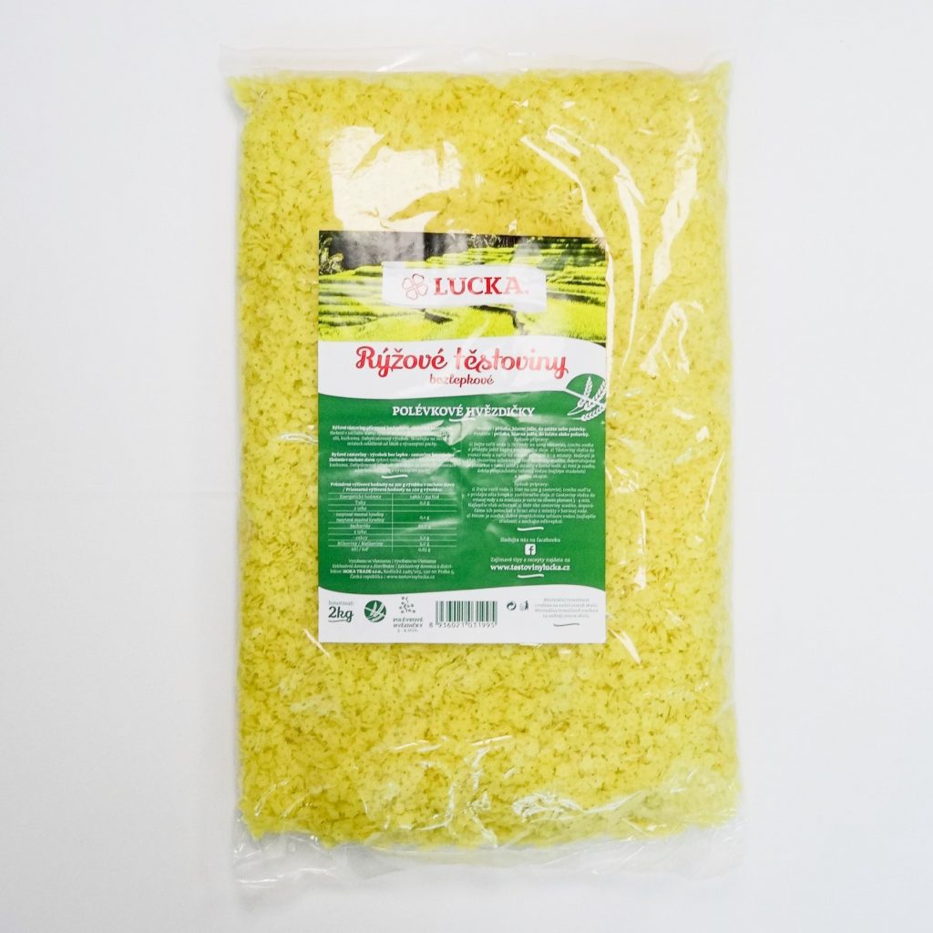 Bezlepkové bezvaječné rýžové těstoviny ve tvaru hvězdiček v gastro balení.