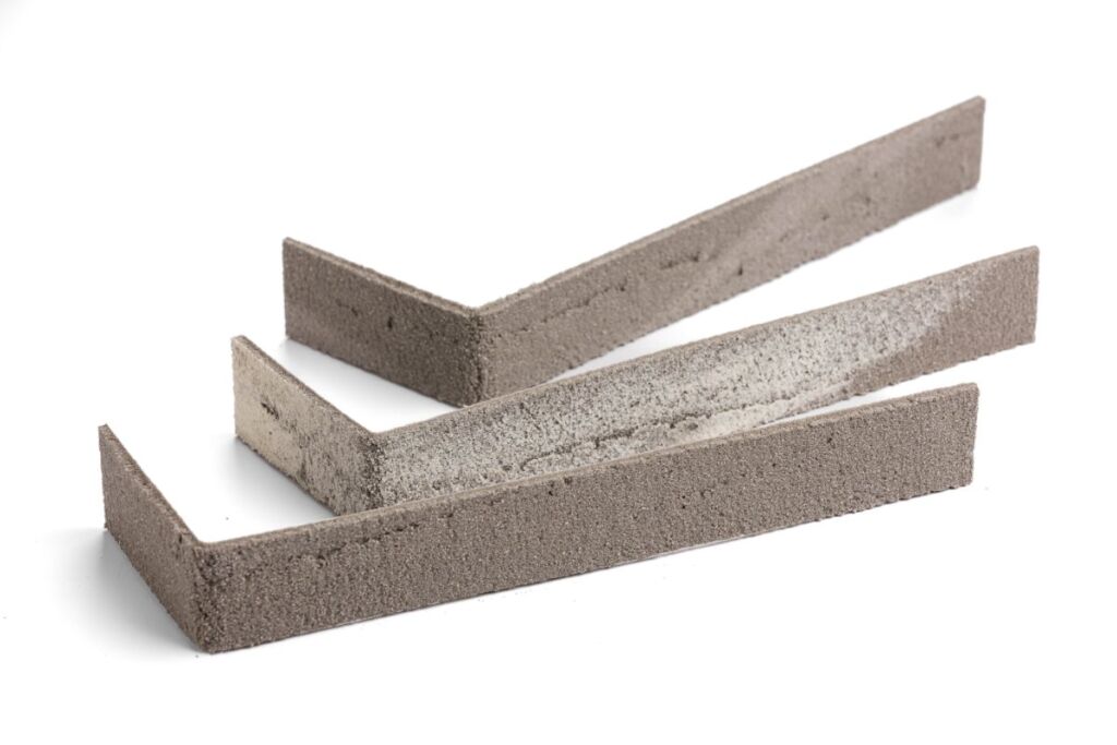 Rohový cihlový obklad v barvě Dublin pro obložení vnějších rohů. Rohové obklady Elastolith – Elabrick jsou dodávané již předohnuté do pravého úhlu, nehrozí tak prasknutí obkladu při jeho ohýbání. S pomocí těchto prvků je obložení rohů velice snadné a rychlé.
