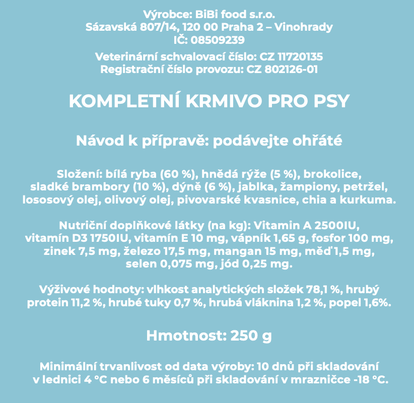 Upozornění: rybu vaříme z celých kusů ryb (filetů) a ne z ořezů a drcených odpadů a tudíž se v krmení může vyskytnout kostička!