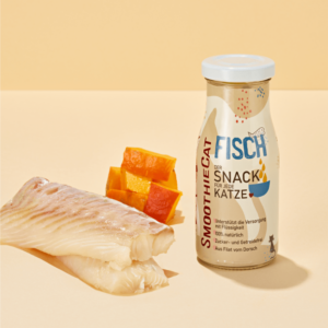 Rybí SmoothieCat je smoothie pro všechny pořádně mlsné šelmy!. Tato příchuť je z přesně tří ingrediencí: filetu z tresky, nepostradatelné pitné vody a vydatné dýně.