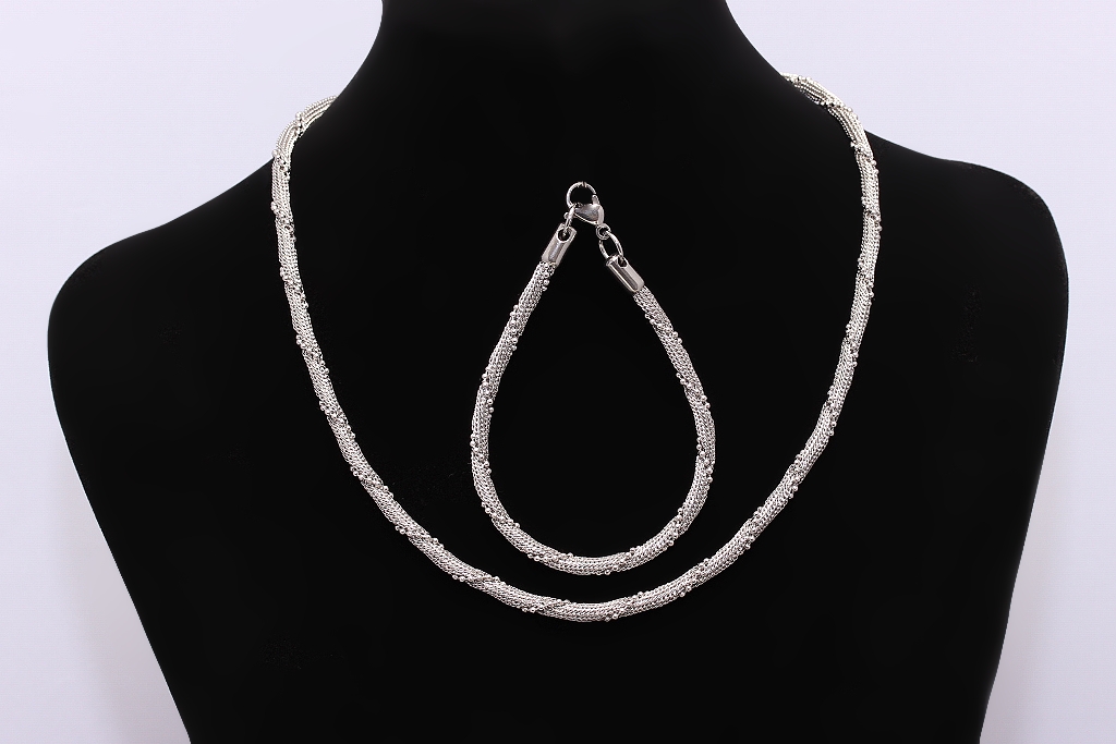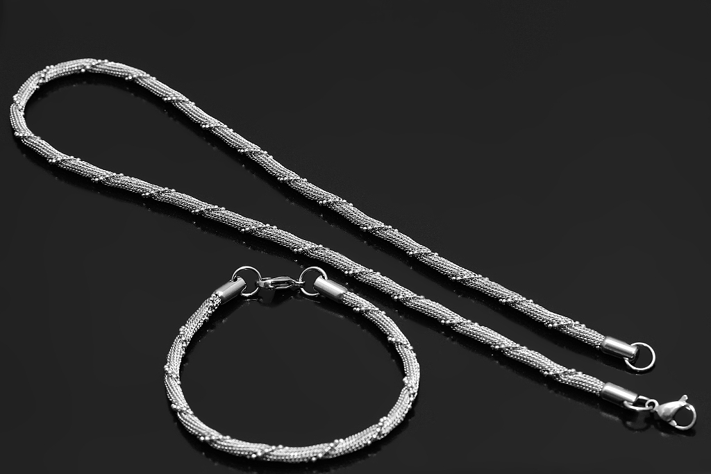Luxusní vzhled. Délka řetízku 45 cm, délka náramku 20 cm, šířka 0,3 cm. Dárková krabička zdarma.