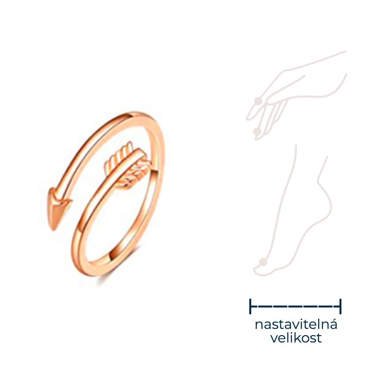 Malý, ale efektní – otevřený prstýnek ARROW ROSE GOLD se zableskne tam, kde byste ho nečekali. Díky nastavitelné velikosti bude držet na místě. Prstýnek stačí jemně sevřít (nebo rozevřít) a upravit tak jeho obvod. Na prstě se pak ani nehne.