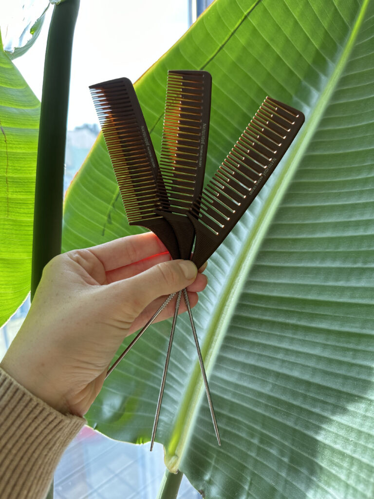 S těmito lehkými hřebeny vybavenými kovovou špičkou budete schopni jednoduchým pohybem vytvořit dokonalé sekce pro melírování. Hřebeny mají navíc lehký, ergonomický tvar a eliminují statickou elektřinu, což předchází odletům při barvení.