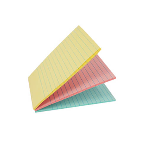 rozměr 101×150 mm, 90 listů v bloku, linkovaný papír, snímatelné lepidlo, 3 pastelové barvy.