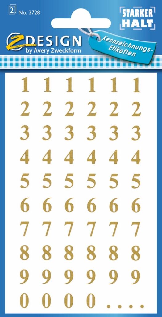 Potřebujete samolepicí písmena nebo číslice pro originální a osobité nápisy či vzkazy? Úhledný nápis můžete vytvořit snadno a rychle, a bez problémů nalepit na nejrůznější předměty a plochy. Spolehlivě lepí a vždy budou krásně čitelná. Jako léty osvědčený expert na etikety a samolepky nabízíme v sortimentu Z-design velký výběr samolepících písmen a číslic v různých provedeních a barvách. Samolepicí číslice Avery Zweckform 3728 nabízí prvotřídní a prověřenou kvalitu, vyzkoušejte je!