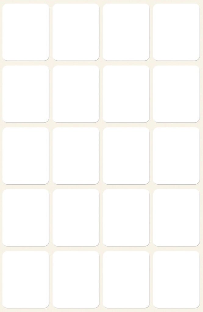 Rozměr 22×18 mm, 120 ks etiket v balení, papírové, permanentní lepidlo, barva bílá.