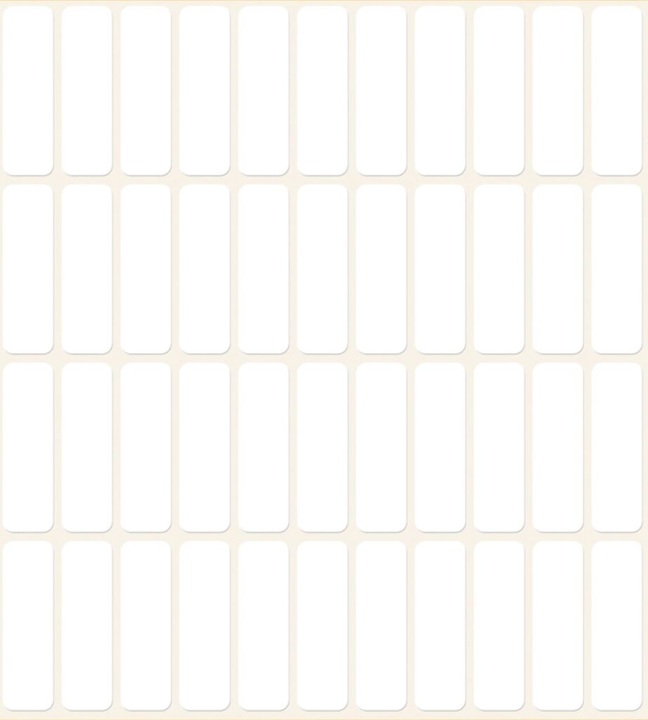 Rozměr 32x10 mm, 1.144 ks etiket v balení, papírové, permanentní lepidlo, barva bílá.