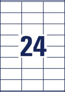 rozměr 70×36 mm, 65 archů A4, 1.560 ks etiket v balení (24 ks/arch), papírové, permanentní lepidlo, barva bílá. Typ tiskárny: černobílá laserová, barevná laserová, inkoustová.