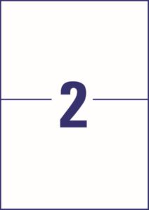 rozměr 210×148 mm, 100 archů A4, 200 ks etiket v balení (2 ks/arch), papírové, permanentní lepidlo, barva přírodní bílá. Typ tiskárny: černobílá laserová, barevná laserová, inkoustová.