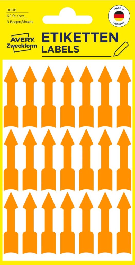 Samolepící šipky Avery Zweckform 3008 na jednoduché a přehledné značení, uspořádávání nebo plánování. Spolehlivá lepivost na všech běžných typech povrchů.